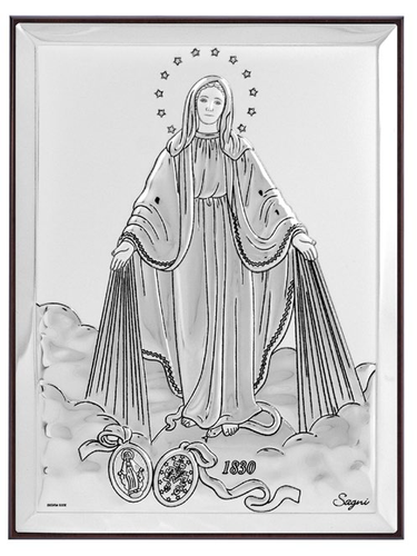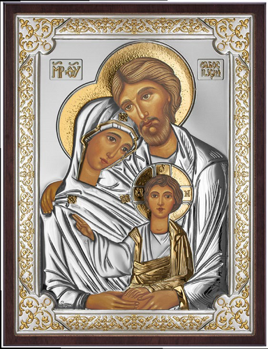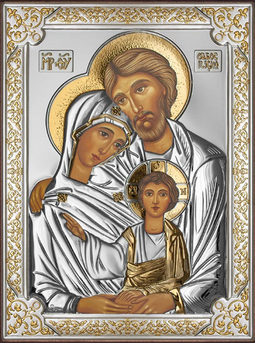 Íconos plata y madera, con imágenes de la virgen, la sagrada Familia, etc